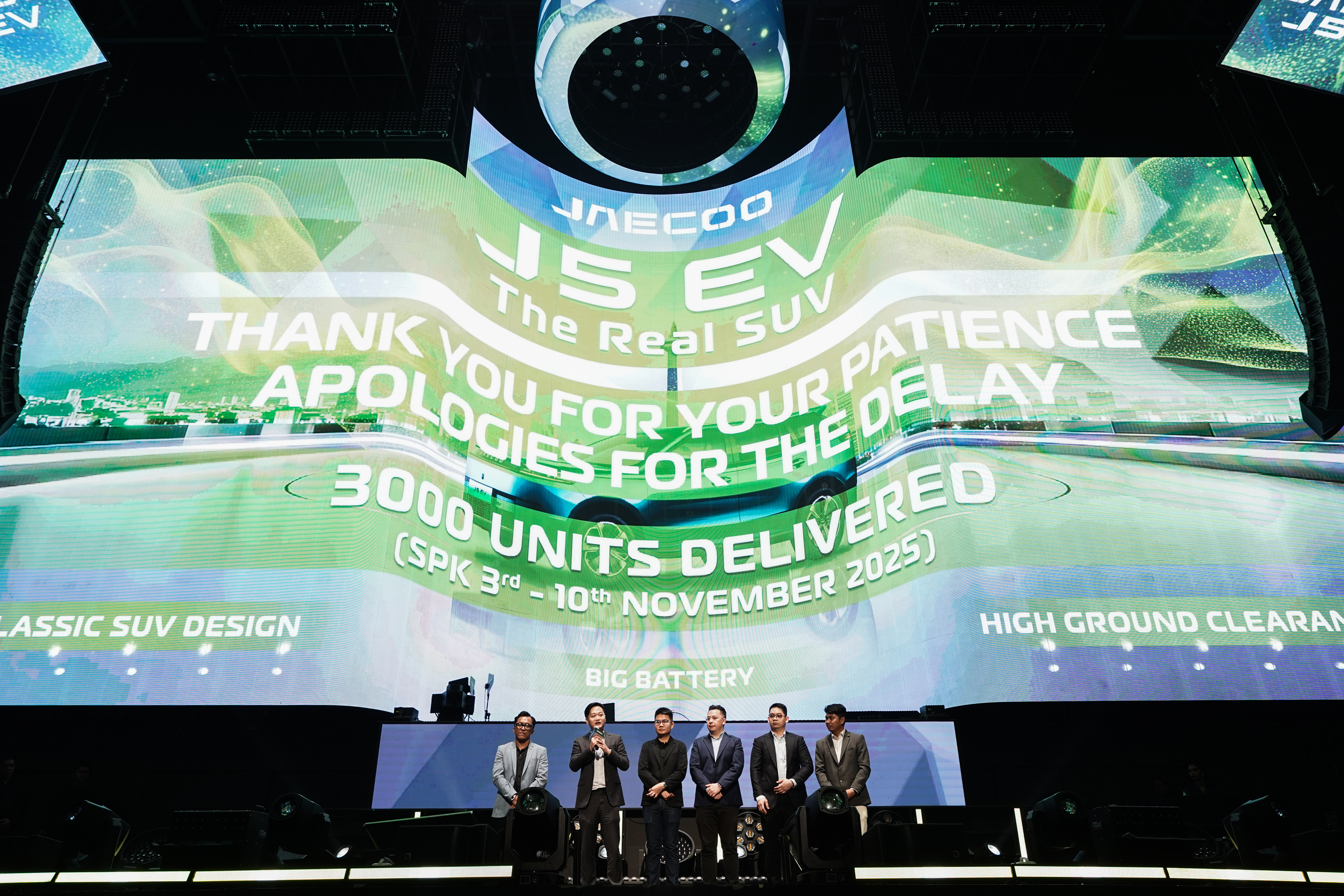 Jim turut menyampaikan permohonan maaf atas keterlambatan yang terjadi. “Kami menyampaikan permohonan maaf kepada calon konsumen yang terdampak waktu tunggu pengiriman. Namun demikian, Jaecoo saat ini tengah melakukan peningkatan kapasitas produksi serta optimalisasi rantai pasok agar unit Jaecoo J5 EV dapat segera diterima oleh konsumen,” jelasnya.
